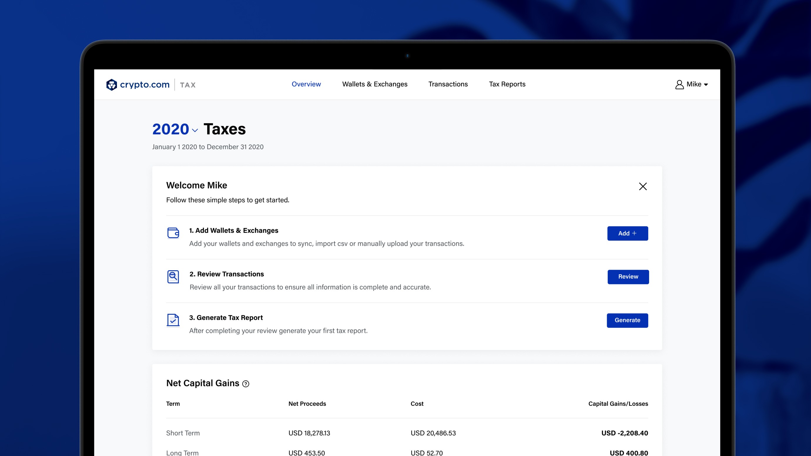 Crypto.com Tax is a free crypto tax reporting platform designed to help users calculate and generate compliant tax reports. It aggregates transaction data across wallets and exchanges, simplifies complex tax calculations, and produces downloadable reports aligned with local regulations.